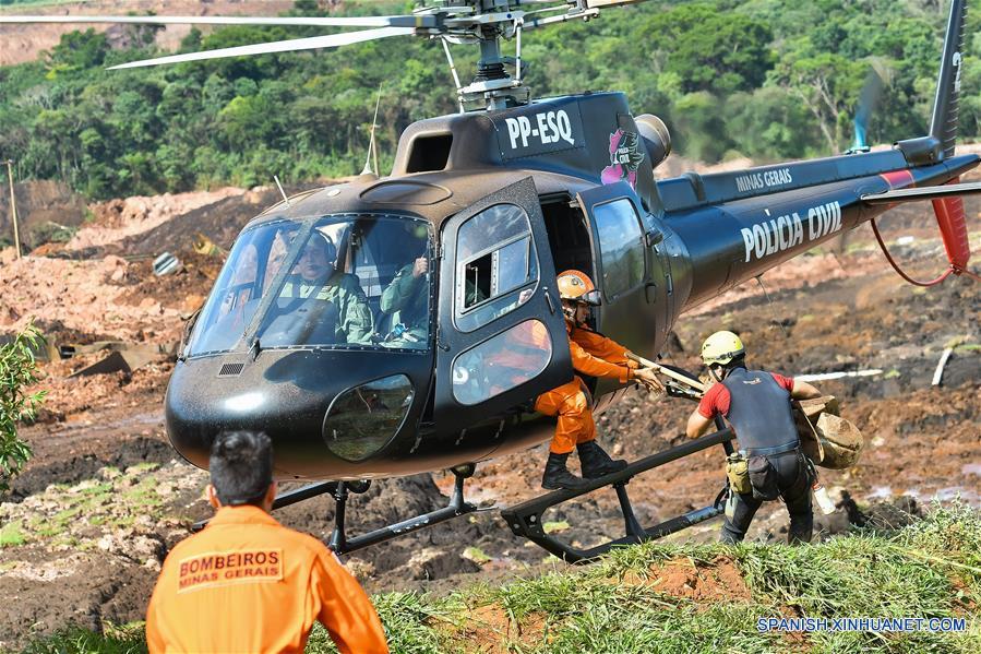 Imagen proveída por AGENCIA ESTADO de elementos de la policía y bomberos trabajando en el lugar destruido por los residuos tras la ruptura de una represa de residuos de la minera brasile?a Vale, en Brumadinho, ciudad en la región metropolitana de Belo Horizonte, capital regional de Minas Gerais, Brasil, el 25 de enero de 2019. Al menos 200 desaparecidos y cuatro heridos es el saldo preliminar de la ruptura de una represa de residuos de la minera brasile?a Vale, la mayor exportadora de hierro del mundo, en la región metropolitana de Belo Horizonte, informó el viernes el cuartel general de Bomberos de la ciudad. (Xinhua/Uarlen Valerio/O TEMPO/AGENCIA ESTADO)