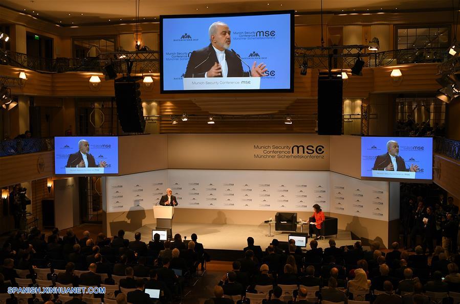 MUNICH, febrero 17, 2019 (Xinhua) -- El ministro de Asuntos Exteriores iraní, Mohammad Javad Zarif (i), pronuncia un discurso durante la 55 Conferencia de Seguridad de Múnich (CSM), en Múnich, Alemania, el 17 de febrero de 2019. Mohammad Javad Zarif instó el domingo a las potencias europeas a hacer más para salvar el acuerdo nuclear con la república islámica y acusó a Washington de tener "una obsesión" con Irán. (Xinhua/Lu Yang)