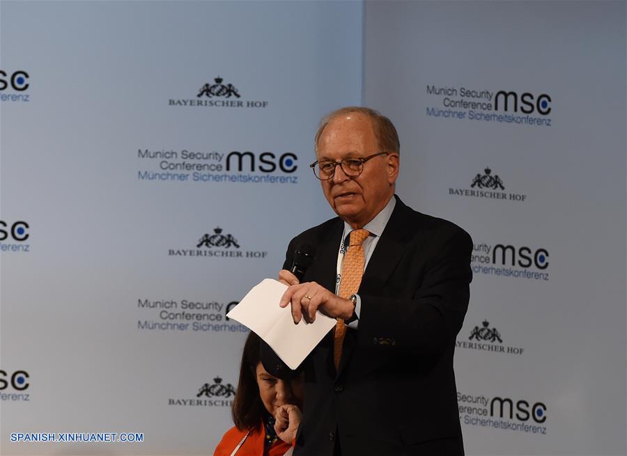 El presidente de la Conferencia de Seguridad de Múnich (CSM), Wolfgang Ischinger, pronuncia un discurso de clausura durante la 55 CSM, en Múnich, Alemania, el 17 de febrero de 2019. La 55 CSM fue clausurada el domingo con el consenso compartido por la mayoría de los participantes de que el orden internacional enfrenta graves problemas. (Xinhua/Lu Yang)
