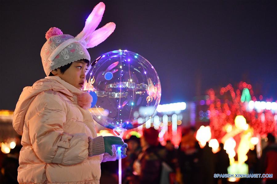 TIANJIN, febrero 18, 2019 (Xinhua) -- Una ni?a visita un espectáculo de linternas en el poblado de Yangliuqing del distrito de Xiqing, en Tianjin, en el norte de China, el 18 de febrero de 2019. Muchos lugares en el país han sido decorados con linternas para celebrar el próximo Festival de la Linterna, que se conmemora el 19 de febrero de este a?o. (Xinhua/Li Ran)