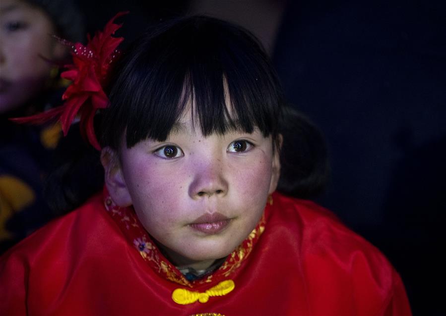 GANSU, febrero 18, 2019 (Xinhua) -- Imagen del 16 de febrero de 2019 de una ni?a observando una presentación de la Opera Gaoshan, en la villa Liujiawan, en el municipio Yulong del distrito Wudu, en Longnan, en la provincia de Gansu, en el noroeste de China. La Opera Gaoshan de Longnan se originó en el actual distrito de Wudu hace más de 700 a?os y ha sido enlistada como uno de los patrimonios culturales inmateriales de China. Presentando una coreografía única que recrea escenas de la vida cotidiana, esta ópera folclórica es interpretada típicamente para conmemorar el Festival de la Linterna, el último día de las celebraciones por el A?o Nuevo Lunar chino. (Xinhua/Cai Yang)
