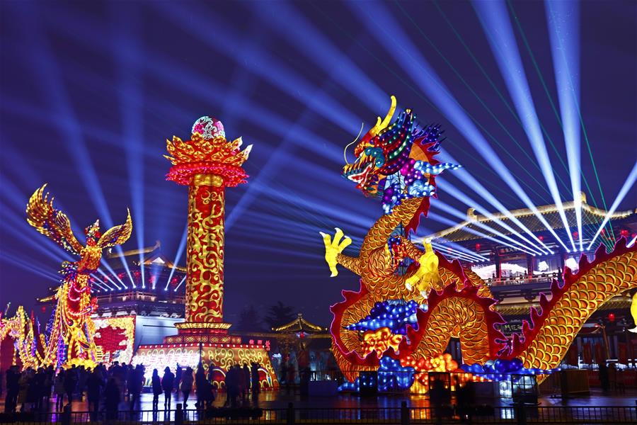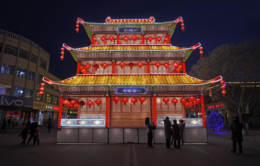 SHAANXI, febrero 18, 2019 (Xinhua) -- Imagen del 17 de febrero de 2019 de visitantes observando faroles en un punto escénico en Xi'an, capital de la provincia Shaanxi, en el noroeste de China. Muchos lugares por todo el país han decorado con faroles para celebrar el próximo Festival de los Faroles, el cual se celebrará el 19 de febrero de este a?o. (Xinhua/Jiao Hongtao)