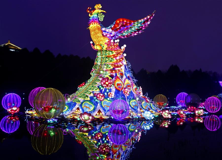 SHAANXI, febrero 18, 2019 (Xinhua) -- Imagen del 17 de febrero de 2019 de faroles exhibidos en un punto escénico en Xi'an, capital de la provincia Shaanxi, en el noroeste de China. Muchos lugares por todo el país han decorado con faroles para celebrar el próximo Festival de los Faroles, el cual se celebrará el 19 de febrero de este a?o. (Xinhua/Jiao Hongtao)