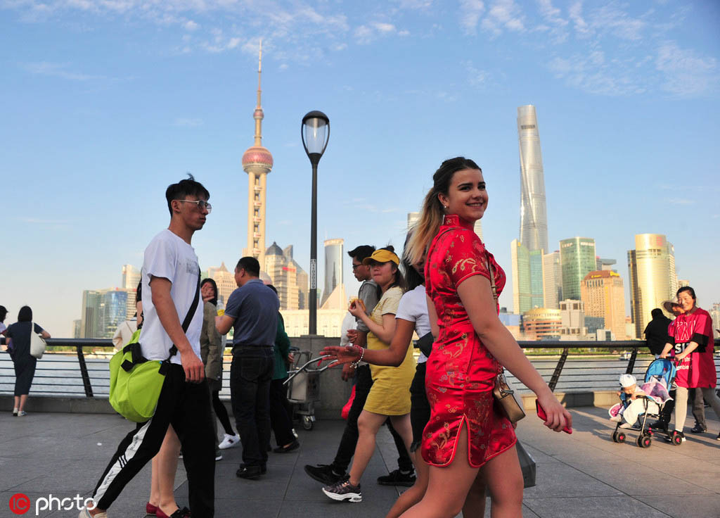 Los turistas visitan el Bund en Shanghai, 4 de mayo del 2019. [Foto: IC]