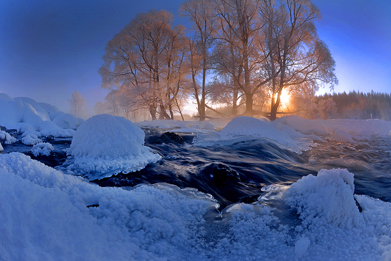 La niebla, la escarcha y la nieve convierten el conocido "río que no se congela" en Arxan, región autónoma de Mongolia Interior, al norte de China, en un país de cuento de hadas. [Foto por Guo Bailin / para chinadaily.com.cn]