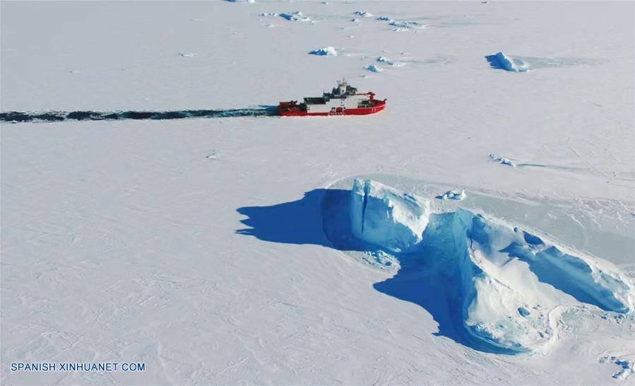 A BORDO DEL XUELONG 2, 24 noviembre, 2019 (Xinhua) -- Imagen del 22 de noviembre de 2019, del rompehielos polar de China, Xuelong 2, rompiendo hielo en las aguas en la Antártida. (Xinhua/Liu Shiping)