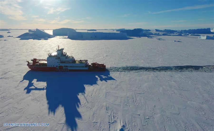 A BORDO DEL XUELONG 2, 24 noviembre, 2019 (Xinhua) -- Imagen del 22 de noviembre de 2019, del rompehielos polar de China, Xuelong 2, rompiendo hielo en las aguas en la Antártida. (Xinhua/Liu Shiping)