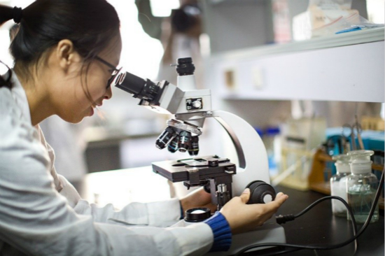 Una investigadora trabaja en el laboratorio del Grupo Shenguan. (Foto: Tanja Herko)
