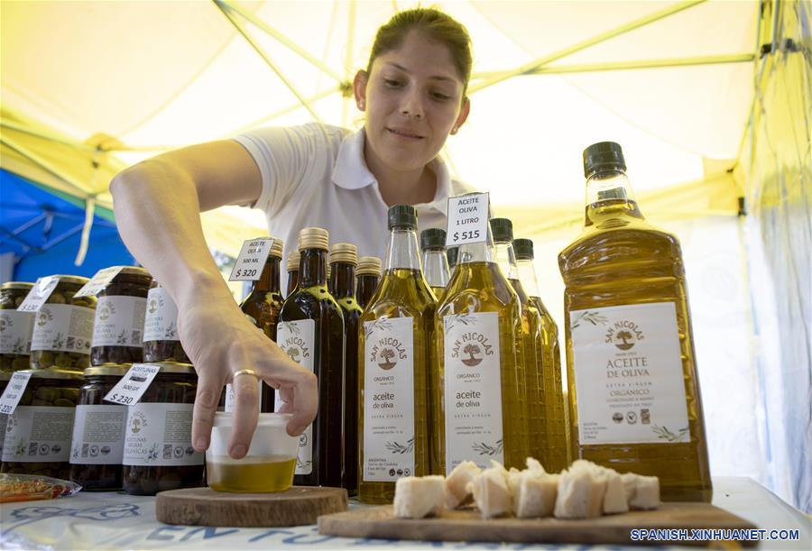 BUENOS AIRES, 3 diciembre, 2019 (Xinhua) -- Una empleada prepara una degustación de aceite de oliva de producción orgánica, durante la feria realizada en el marco del Día Nacional de la Producción Orgánica en la Plaza Lavalle, en la ciudad de Buenos Aires, capital de Argentina, el 3 de diciembre e 2019. Ciudades de Argentina acogen desde el martes y hasta el domingo próximo la "Semana de los Alimentos Orgánicos", iniciativa destinada a promover en el mercado interno este tipo de alimentos con alto valor agregado. (Xinhua/Martín Zabala)