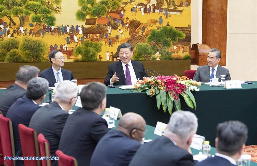 El presidente chino, Xi Jinping, se reúne con delegados extranjeros que se encuentran en China para asistir al Foro Internacional Imperial Springs 2019 en el Gran Palacio del Pueblo en Beijing, capital de China, el 3 de diciembre de 2019. (Xinhua/Li Tao)