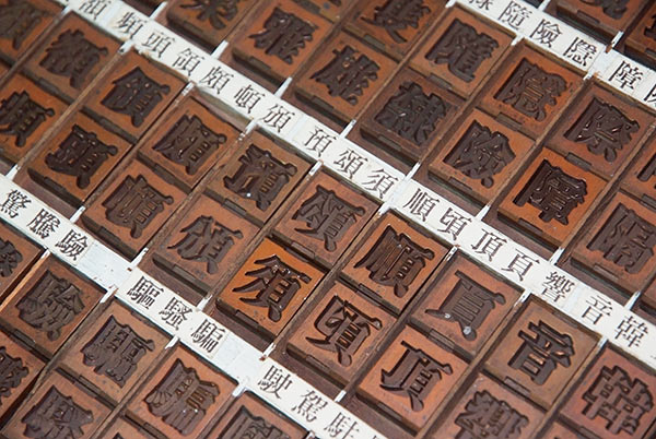 última colección de moldes de cobre utilizados en la creación de caracteres tradicionales chinos de la Rixing Type Foundry. [Foto: proporcionada a chinadaily.com.cn]