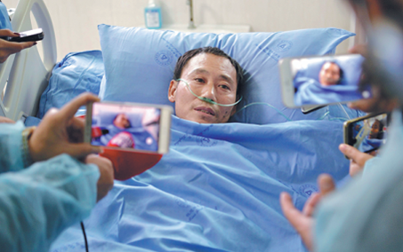 En el hospital, Liu Guihua estaba de buen humor, comió gachas y sonreía a sus visitantes.