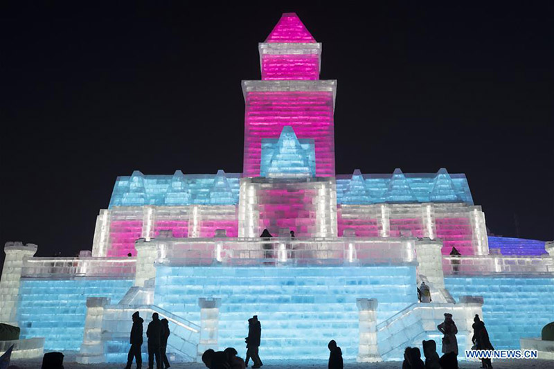 El 23 de deciembre de 2019, la gente visita la 21a edición del Mundo de Hielo y Nieve en Harbin, capital de la provincia de Heilongjiang, en el noreste de China. (Fotografía por Zhang Tao/Xinhua)