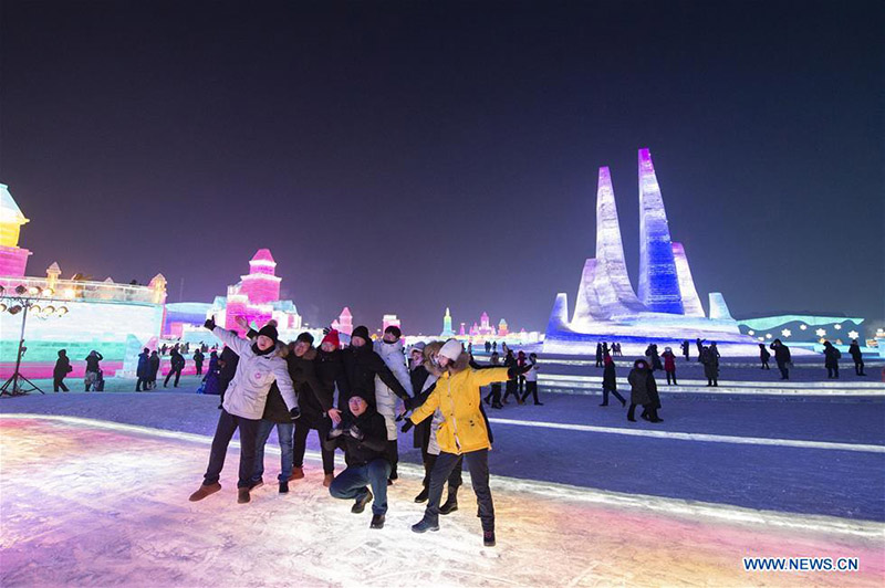 El 23, la gente se hace fotos durante la 21a edición del Mundo de Hielo y Nieve en Harbin, capital de la provincia de Heilongjiang, en el noreste de China. (Fotografía por Zhang Tao/Xinhua)