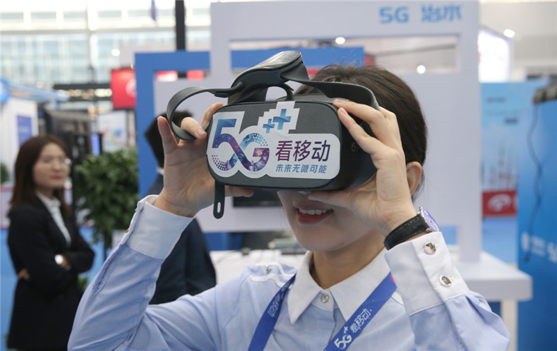 Un visitante prueba un dispositivo 5G de China Mobile durante una exposición de la industria en Nantong, provincia de Jiangsu. [Foto por Xu Congjun / para China Daily]