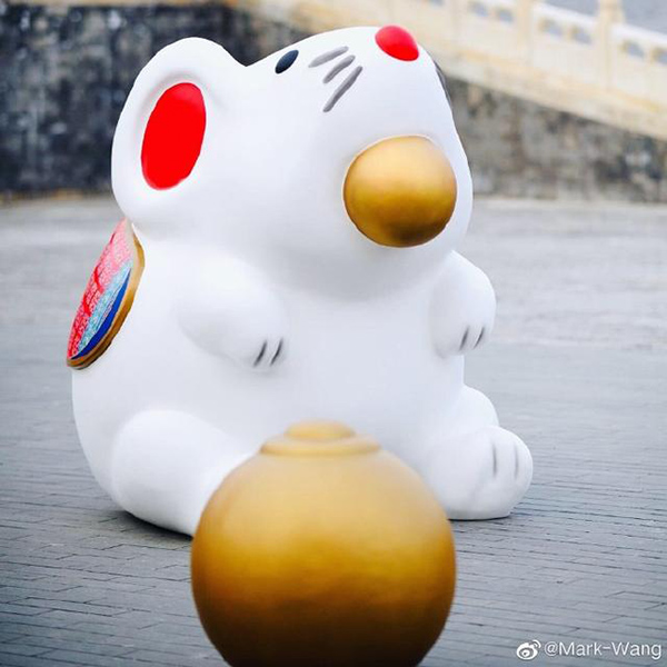 Una mascota con forma de rata en el Museo de Palacio (La Ciudad Prohibida) en Beijing, el 26 de diciembre. [Foto / Weibo]