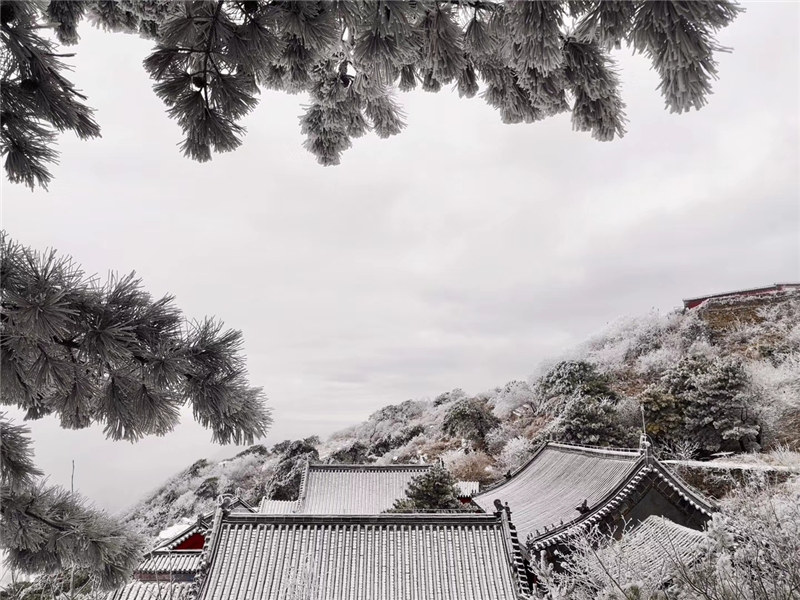 La nevada del miércoles creó un paisaje impresionante en la monta?a Taishan, en la provincia de Shandong, donde árboles, acantilados, rocas y edificios quedaron cubiertos de escarcha y nieve. [Foto de Han Fuying / para chinadaily.com.cn]
