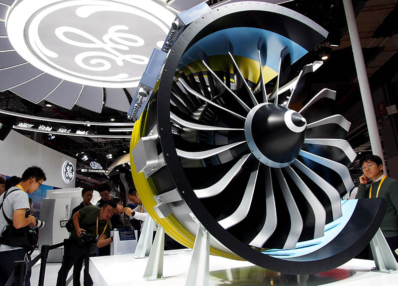 La gente visita el stand de GE en el área de exhibición de equipos durante la segunda Exposición Internacional de Importaciones de China en Shanghai, el 8 de noviembre de 2019. (Xinhua / Chen Fei)