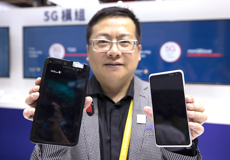 Un miembro del personal de Qualcomm presenta dispositivos 5G en el área de exhibición de ciencia y tecnología durante la segunda Exposición Internacional de Importaciones de China en Shanghai, el 7 de noviembre de 2019. (Xinhua / Jin Liwang)