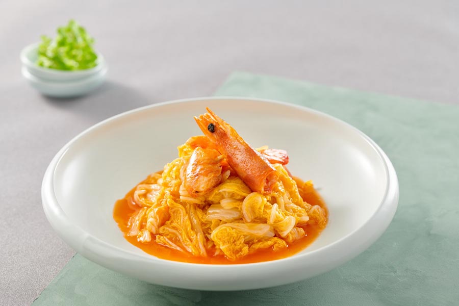 Gambas estofadas con repollo. [Foto: proporcionada a China Daily]
