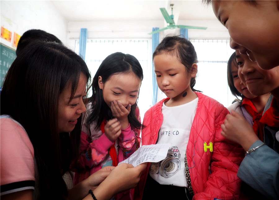 Un maestro (izquierda) ense?a a los estudiantes a escribir poesía en una escuela secundaria en el municipio de Mangshui, ciudad de Baoshan, provincia de Yunnan, suroeste de China. [Foto proporcionada a China Daily]