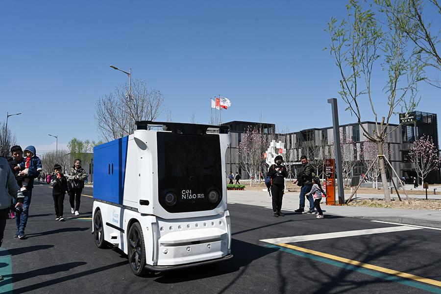 El coche eléctrico exprés de Cainiao Network funciona en Xiongan, Baoding, provincia de Hebei. [Foto: Xinhua]
