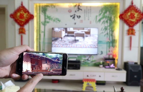 Li muestra la vieja casa de adobe donde antes vivía. [Foto: Chen Zebing/China Daily]