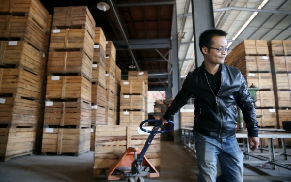 Un comerciante de frutas prepara para transladar un lote de naranjas ombligo. [Foto: Chen Zebing/China Daily]