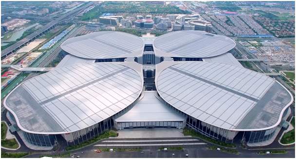 Con forma de trébol de cuatro hojas, este recinto de exposiciones es el sitio permanente de la Exposición Internacional de Importaciones de China, que desde hace dos a?os se celebra en Shanghai. Con una superficie expositiva total de 500.000 metros cuadrados, el Centro Nacional de Exposiciones y Convenciones