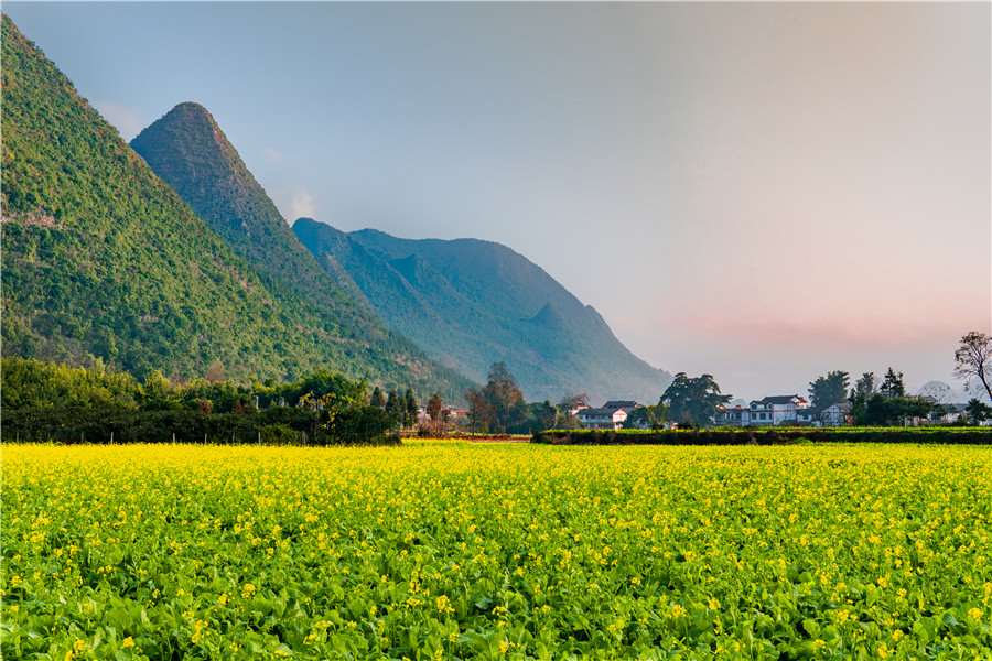 A finales del invierno, la floración temprana de la colza inicia una escena encantadora. [Foto: Li Lingyan/ Chinadaily]