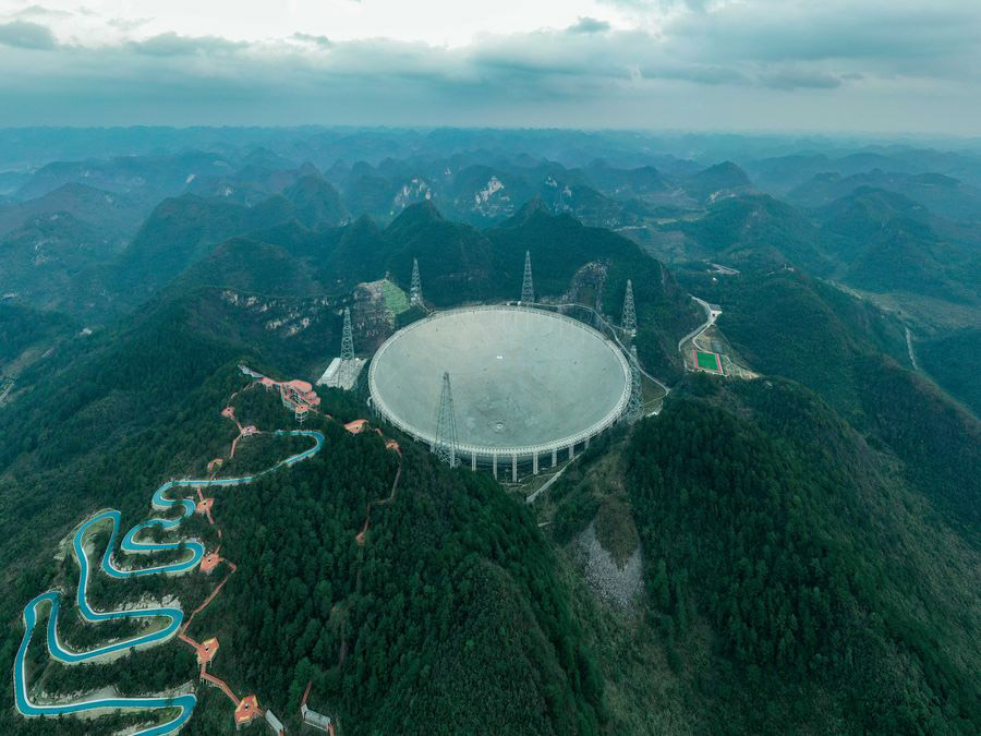 El telescopio esférico de quinientos metros de apertura de China (FAST, por sus siglas en inglés) es un telescopio de plato único con un diámetro de medio kilómetro y un área de recepción equivalente a unos 30 campos de fútbol. Se encuentra en una depresión kárstica naturalmente profunda y redonda en la provincia de Guizhou, suroeste de China.
