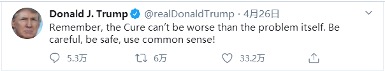 Si bien se negó a asumir la responsabilidad de sus comentarios sobre los desinfectantes, Trump instó a los estadounidenses a usar el sentido común. Bueno, parece que Trump es el que está fuera del ámbito del sentido común.