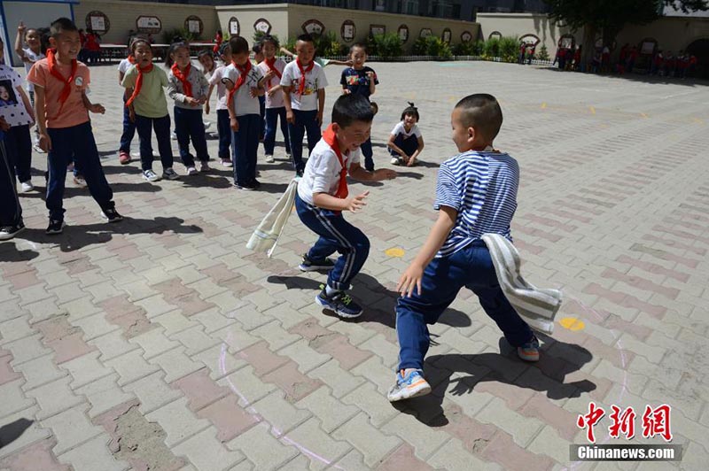 El 2 de junio, los estudiantes de primaria asistieron a clases de educación física al aire libre. El mismo día, los estudiantes de los grados 1, 2 y 3 de las escuelas primarias en Hohhot, Mongolia Interior, regresaron a las aulas. Por Liu Wenhua. Chinanews.com