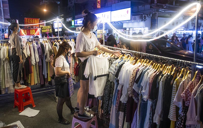 Una vendedora clasifica la ropa a la venta en un mercado nocturno en la calle Baocheng en Wuhan, provincia de Hubei, centro de China, el 3 de junio de 2020. [Foto de Ke Hao / For chinadaily.com.cn]