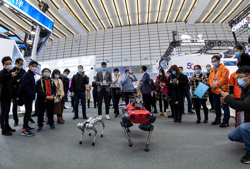 El 22 de noviembre, el público visitó la exposición canina electrónica de inspección automática ANYmal en la Expo "Light of the Internet". Zhai Huiyong / Pueblo en Línea