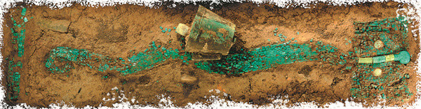 Los artefactos de color turquesa con forma de dragón y las campanas de bronce desenterradas en Erlitou se combinan para presentar un aura de dinastía a los ojos de los arqueólogos. [Foto proporcionada a China Daily]