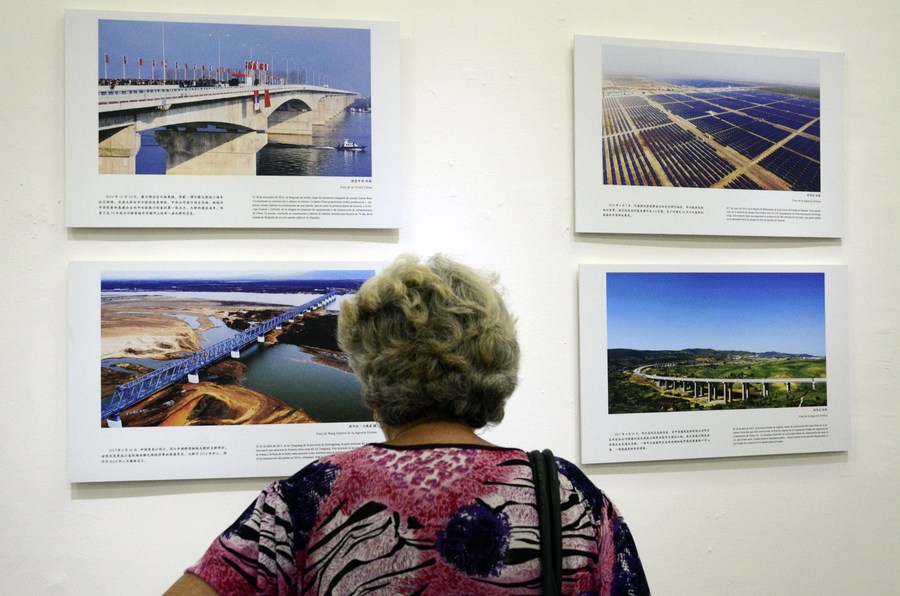 Una mujer observa imágenes de una exposición fotográfica sobre la iniciativa de la Franja y la Ruta, en la Biblioteca Nacional de Cuba "José Martí", en La Habana, capital de Cuba, el 25 de septiembre de 2018. (Xinhua/Joaquín Hernández)