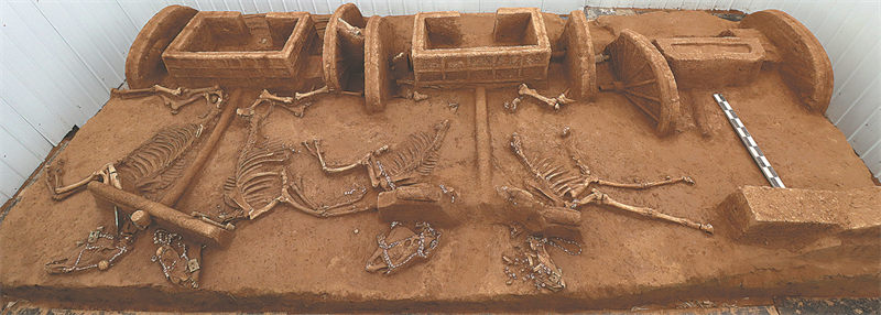 Una fosa funeraria de carros Shang y restos de caballos excavados en el sitio de Shaojiapeng, 2,5 km al sur del área del Palacio de Yinxu. [Foto/ China Daily]