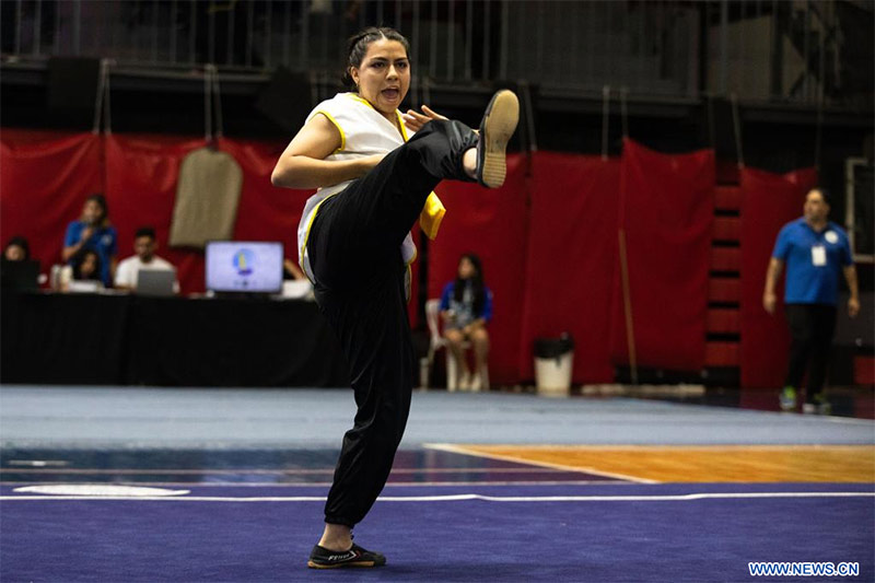 BUENOS AIRES, 15 noviembre, 2022 (Xinhua) -- Imagen del 13 de noviembre de 2022 de una atleta compitiendo en la categoría de Kung Fu Choy Lay Fut durante el Tercer Campeonato Sudamericano de Kung Fu en el Polideportivo Roberto Pando, en Buenos Aires, Argentina. Argentina celebró una verdadera fiesta del Wushu o Kung Fu con el Tercer Campeonato Sudamericano de esta modalidad de las artes marciales, realizado del 10 al 14 de noviembre en la ciudad de Buenos Aires, organizado por la Federación Suramericana de la disciplina. (Xinhua/Martín Zabala)