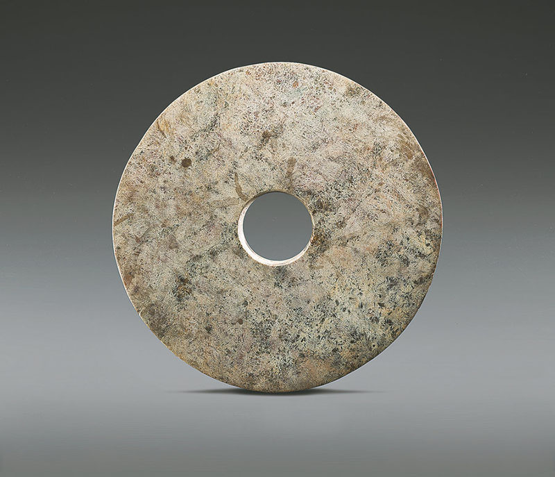Un disco de jade desenterrado en el sitio de Liangzhu que a menudo se usaba para rituales religiosos. [Foto proporcionada a China Daily]