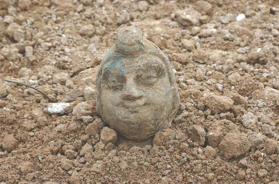 Cabeza de una antigua figura de cerámica encontrada en un grupo de tumbas en Datong, provincia de Shanxi. [Foto: proporcionada a China Daily]