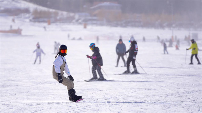 Turistas disfrutan del esquí en las pistas. (Foto de Li Xinyang, Pueblo en Línea)