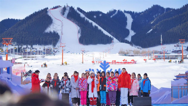 En la ceremonia de apertura, Guo Dandan, el campeón mundial de esquí de estilo libre, lanzó la iniciativa de "seguir al campeón y esquiar".