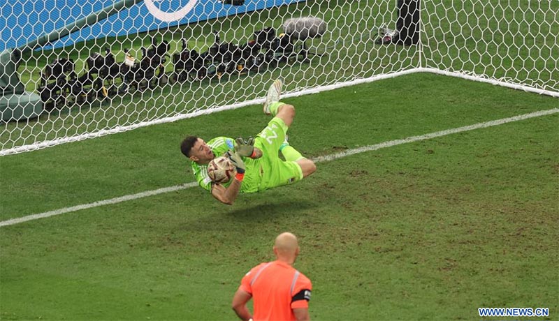 DOHA, 18 dic (Xinhua) -- El guardameta argentino Emiliano Martínez reconoció que sus compa?eros y él atravesaron por toda una gama de emociones antes de levantar el trofeo de la Copa Mundial 2022 tras pasar por una fase de penales.