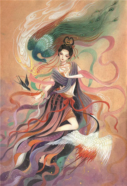 Las otras pinturas de Liu, incluida una representación de una guerrera llamada "la misteriosa dama de los nueve cielos". [Foto proporcionada a China Daily]
