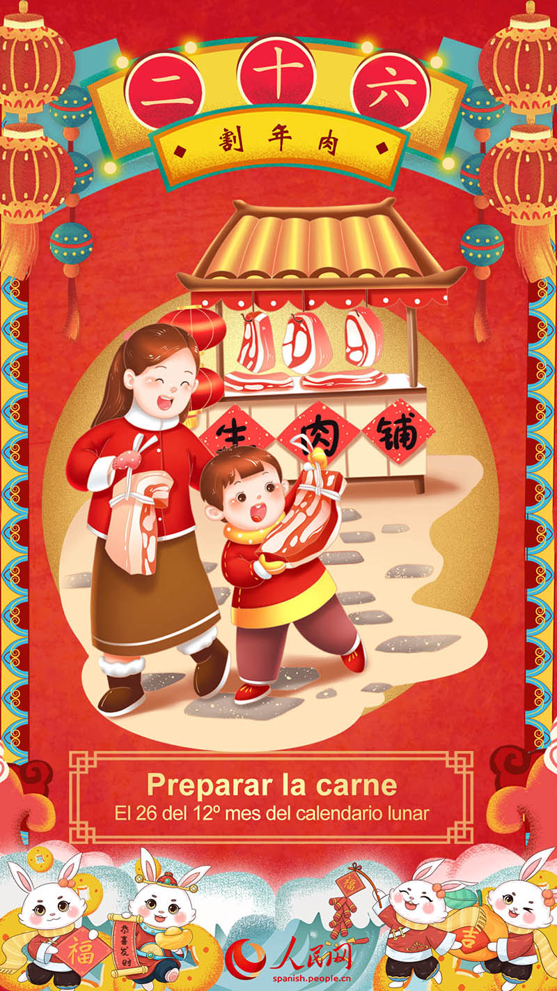 En el pasado, la gente solía comer carne una vez al a?o, solo durante el Festival de Primavera. Antes de A?o Nuevo Chino, la gente mataba cerdos y ovejas para comer la carne durante el festival.