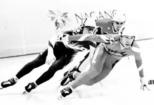 El 17 de febrero de 1998, el atleta chino Li Jiajun (primero desde la derecha) ganó la medalla de plata en la competencia masculina de patinaje de velocidad en pista corta de 1000 m en los Juegos Olímpicos de Invierno de Nagano en Japón. Esta fue la primera medalla de China en un deporte masculino en unos Juegos Olímpicos de Invierno.(Foto del Diario del Pueblo digital)