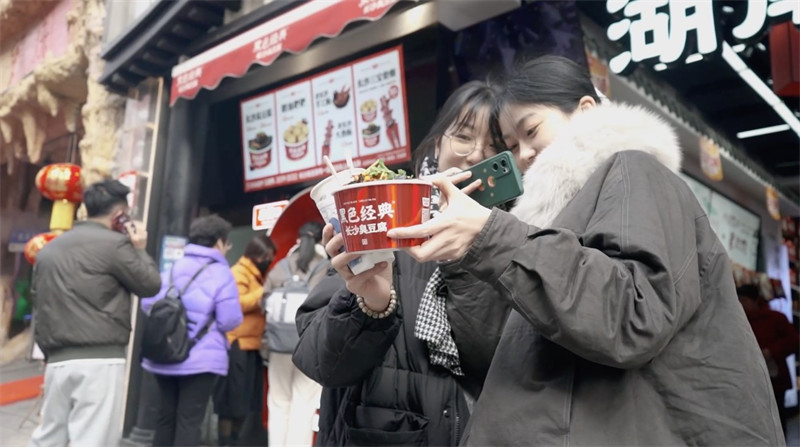 La tienda de tofu apestoso donde trabaja Deng Lili se encuentra en la calle peatonal Huangxing, una de las zonas más concurridas de Changsha. Según ella, vendió 10.000 tazones de tofu apestoso al día durante el Festival de la Primavera de este a?o, y hasta los clientes hacían fila en el lado opuesto de la calle.