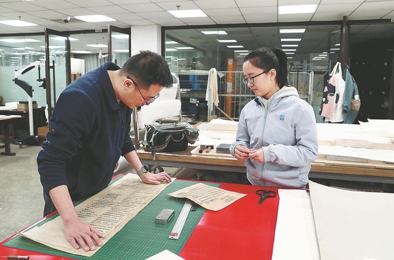 Song discute métodos de reparación de libros antiguos con su colega Xie Jincheng. Zou Hong/China Daily