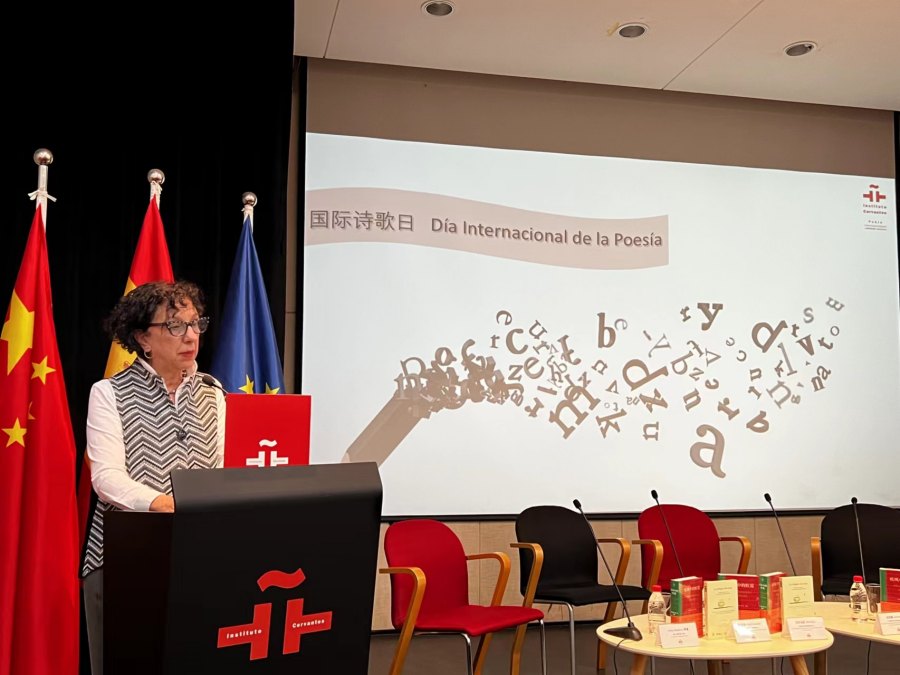 Durante el encuentro, Isabel Cervera Fernández, directora del Instituto Cervantes de Pekín, ofreció la bienvenida a las nuevas publicaciones multilingües, justo “al inicio de la primavera y dentro de la conmemoración del Día Mundial de la Poesía que se ha estado celebrando en todo el mundo”.